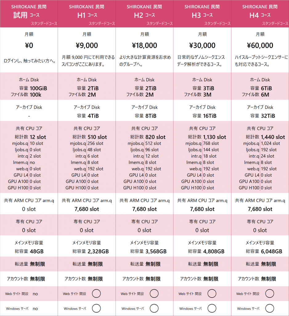 2015-2016 年度学術機関向け利用料金 Shirokane3